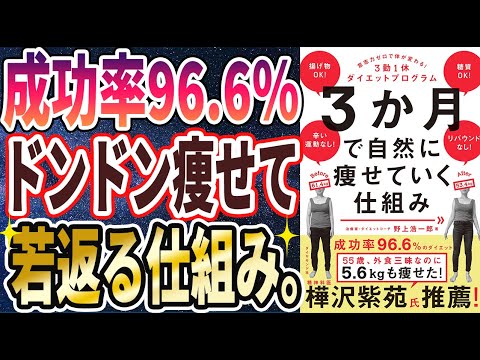 こんにちは皆さん!今回は、野上浩一朗さんの書籍「3か月で自然に痩せていく仕組み――意志力ゼロで体が変わる!3勤1休ダイエットプログラム」を紹介します。このダイエットプログラムは、3か月間続けるだけでリバウンドの心配もなく、自然に痩せることができるとされています。しかも、期間中に好きなものを食べてもOK、お酒もOK、ハードな運動も不要という魅力的な条件です。